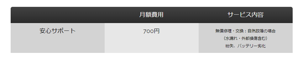 ※本オプションサービスのサポート対象は、レンタル端末機器本体のみとなり、端末機器本体と一緒にお送りした付属機器はサポート対象外となります。