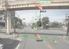 MMSで取得した画像と地図を合わせて映し出すことで計測等に役立てます。